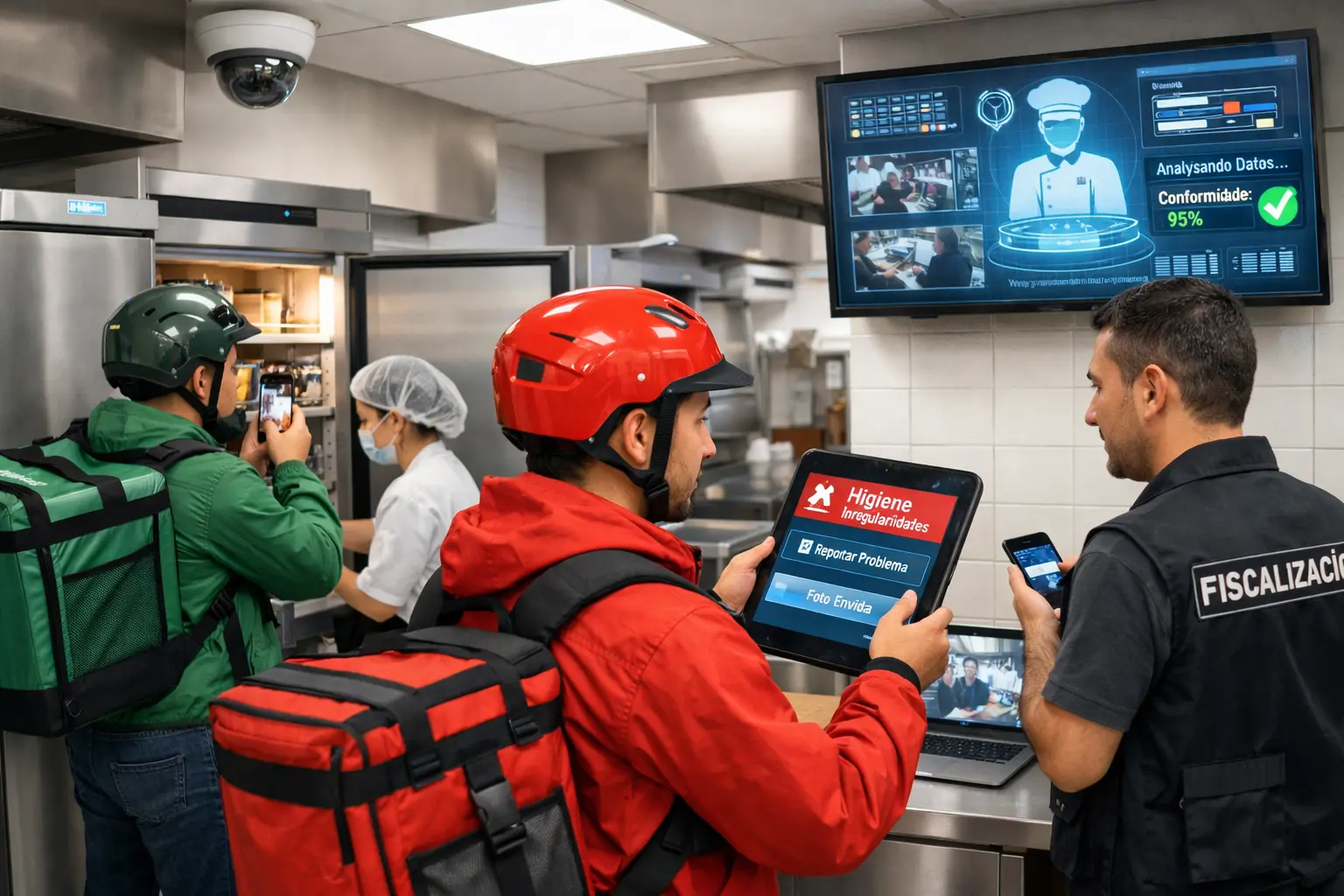 - 1 – Os entregadores de comida, conhecidos como “cavaleiros”, se tornam parte da fiscalização, ajudando a identificar possíveis riscos durante a coleta e entrega dos pedidos. Eles podem fazer denúncias diretamente no sistema caso encontrem problemas, como documentos irregulares ou condições insalubres no estabelecimento.